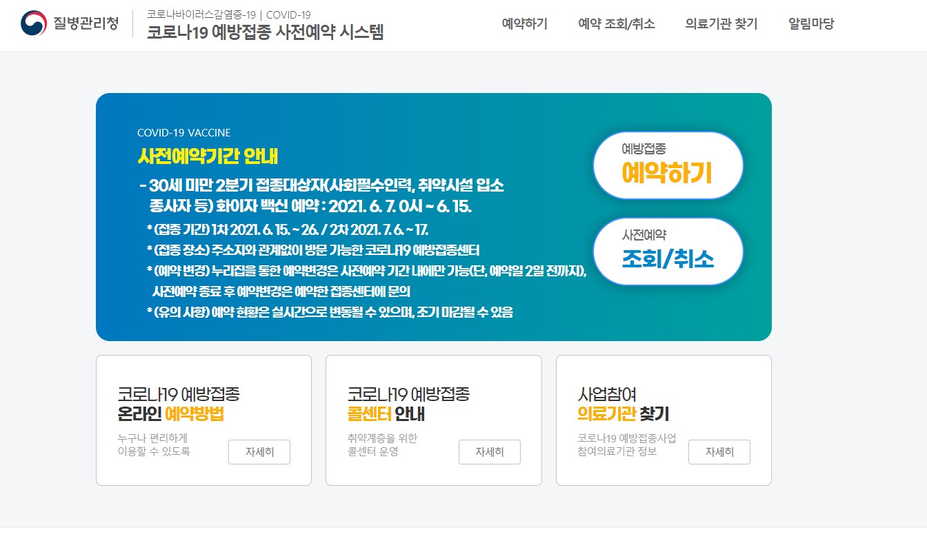코로나19 예방접종 사전예약 시스템