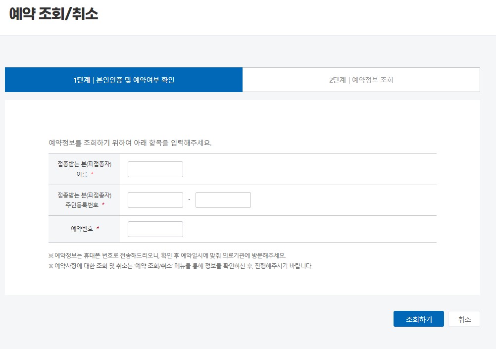 코로나19 백신 예약조회 및 취소
