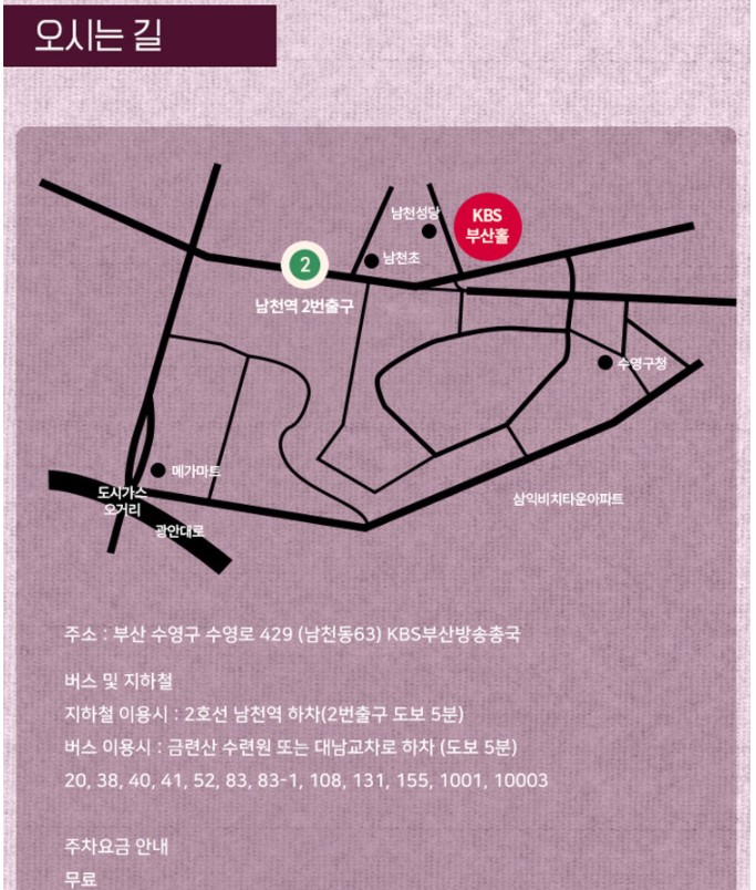장윤정은 오는 6월 19일 토요일에 부산 수영구 kbs 부산방송국 홀에서 콘서트가 잡혀있다. 그 다음으로는 6월 26일 토요일 대구에 엑스코 서관 5층 컨벤션홀에서도 콘서트가 잡혀 있다. 정확한 콘서트장의 주소는 부산 수영구 수영로 429 (남천동63) kbs부산방송총국이며 지하철로 장윤정 콘서트장에 갈때는 2호선을 타고 남천역에 하차 하면된다. 버스는 20, 38, 40, 41, 52, 83, 83-1, 108, 131, 155, 1001, 1003번을 타면 되며 금련산 수련원 또는 대남교차로에 하차하면된다.