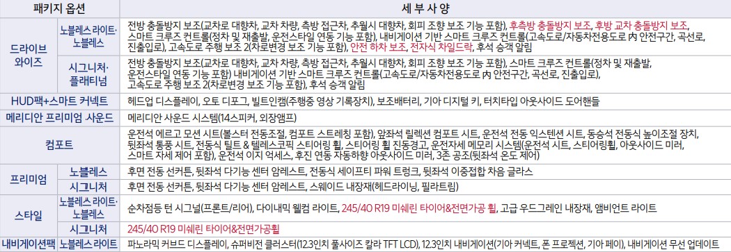 헤드업 디스플레이, 오토 디포그, 빌트인캠, 보조배터리, 기아 디지털 키, 터치타입 아웃사이드 도어 핸들