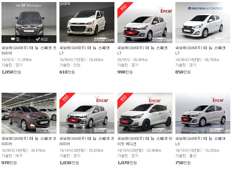 지금까지 스파크 중고차 시세표를 알아보았습니다.