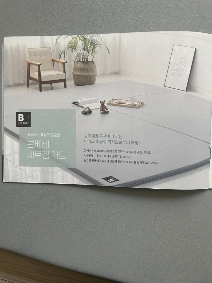 층간소음매트 본베베의 설명서? 입니다. 구매를 원하시는분들은 자세히 읽어보시면 될 것 같아요. 제가 쁘띠메종매트를 구입을 했었다고 처음에 말씀드렸는데 지금 2019년에 구입을 했으니 3년차네요. 제가 관리를 잘 못한거도 있겠지만 약간 곰팡이? 같은게 생겼어요. 녹물 묻은 듯한 점이 군데군데 보여요. 근데 참고로 쁘띠메종은 커버교환권을 줘요~! 그래서 이번에 커버교환건을 신청을 해놓은 상태구요. 마감같은 느낌은 쁘띠메종이 좀 더 좋았던 것 같아요. 근데 본베베는 처음에 택배상자를 열었을때 냄새같은건 하나도 안났어요. 그게 참 신기했어요. 약간의 냄새는 났었는데.. 이건 정말 냄새가 하나도 안나서 바로 깔았어요. 지금 3일 정도 되었는데 아직까지는 큰 불만없고 만족하는거 같아요. 층간소음도 흡수가 잘 되는 것 같구요. 대신.. 머리카락이 생각보다 잘 보이네요 ㅎㅎ. 자주 청소를 해야될 것 같아요. 그래도 매트사이는 틈이 없고 매트와 매트 사이는 테이프를 주는데 저는 안바를려구요. 자국이 생길수도 있다고 하더라구요. 그건 이제 본인 마음이니 바르고 싶으신분들은 바르시면 될 것 같아요. 이상으로 층간소음매트 본베베 제로갭 매트 구매후기였습니다.